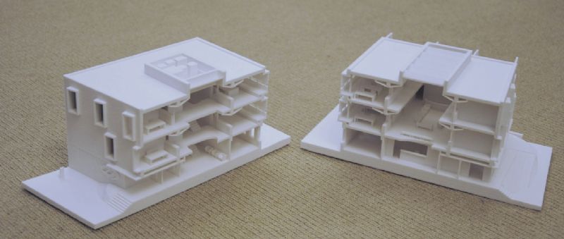 Zowel maquettes als 3D-prints zijn instrumenten bij het nadenken over architecturale vormen en concepten, met elk hun voor- en nadelen. Met 3D-prints kunnen snel witte volumes in allerhande grillige vormen geproduceerd worden. Ze helpen om het volumespel te visualiseren en tastbaar te maken.