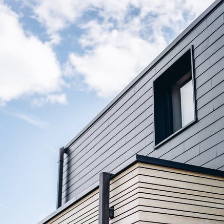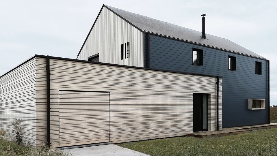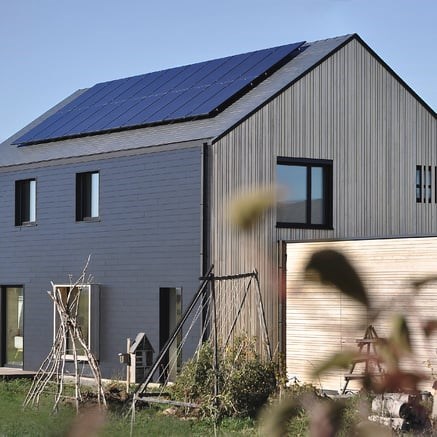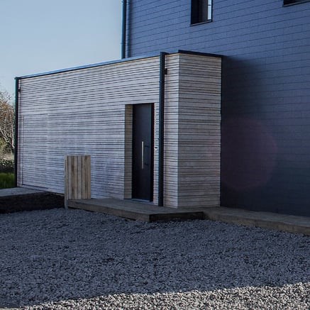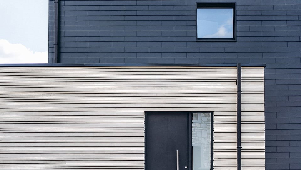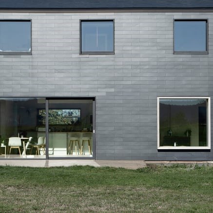 De ramen van Finstral vormen als kleine canvas doeken waarin de natuur zich spiegelt. Een compositie van lijnen en rechthoekige vlakken herdefinieert een traditioneel huis in Malonne: helder en eenvoudig, maar verre van gewoon. De wandbekleding van duurzaam Accoya-hout vormt een fraai contrast met het donkere leisteen, terugkerend in de kleur van de stijlvolle voordeur.