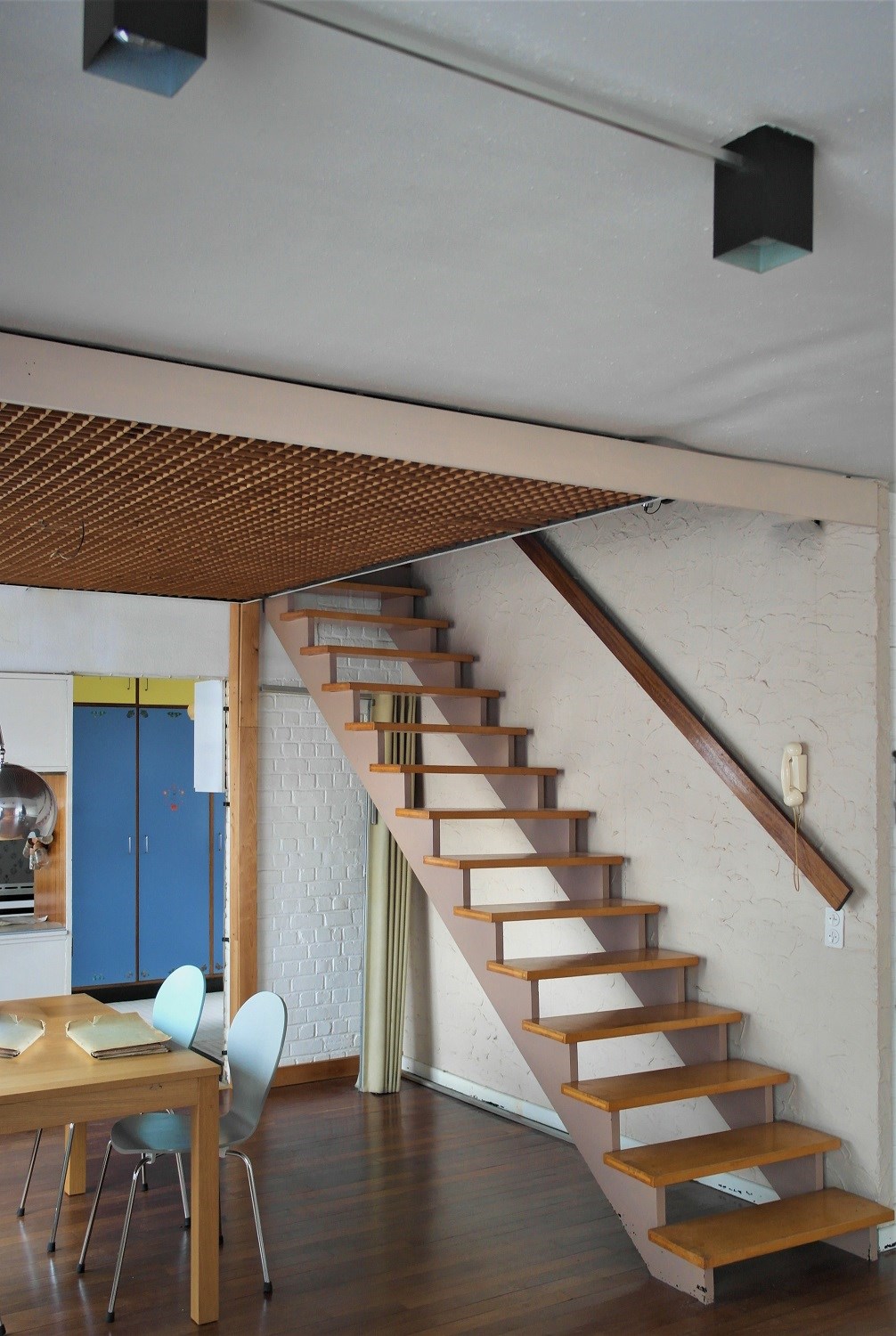 De voormalige persoonlijke woning van architect Hoebeke is dan ook een bijzonder opmerkelijk en representatief voorbeeld van deze esthetiek met dynamische vormen die het sfeervolle optimisme van die tijd weerspiegelt. Ze brengt zowel binnen als buiten alle architecturale kenmerken van deze eigen taal samen. Het huis toont de beheersing en kennis van zijn architect: de interessante en gedurfde combinatie van boven elkaar geplaatste kubussen die uit verschillende materialen en kleuren bestaan, de glazen gevelopeningen die veel licht binnenlaten, de voorkeur voor echte steen en materialen met een rustieke textuur die de volumes opfleuren en de trappen die zich bijna luchtig naar de kamers openen, zijn allemaal elementen die daarvan getuigen.