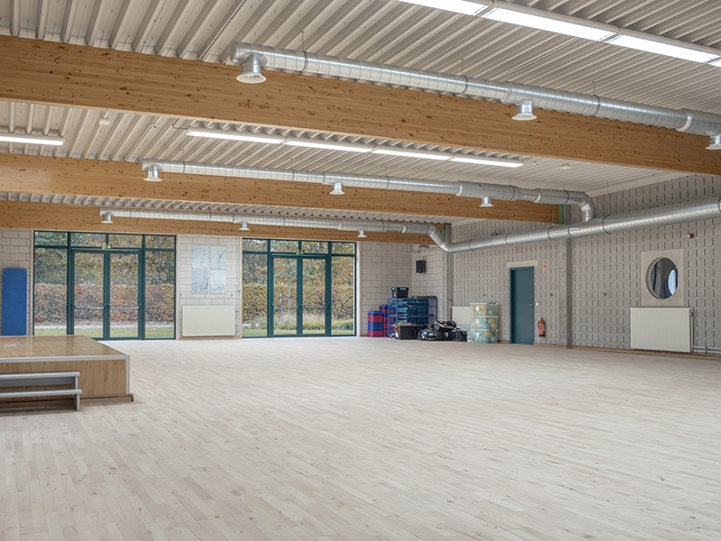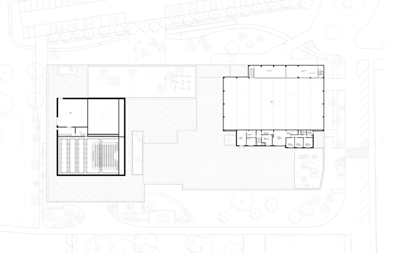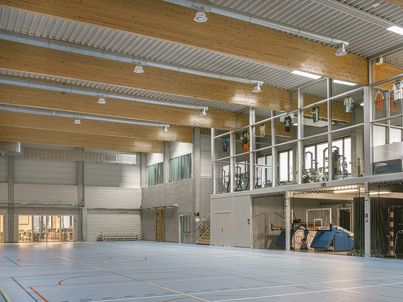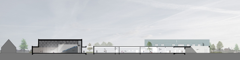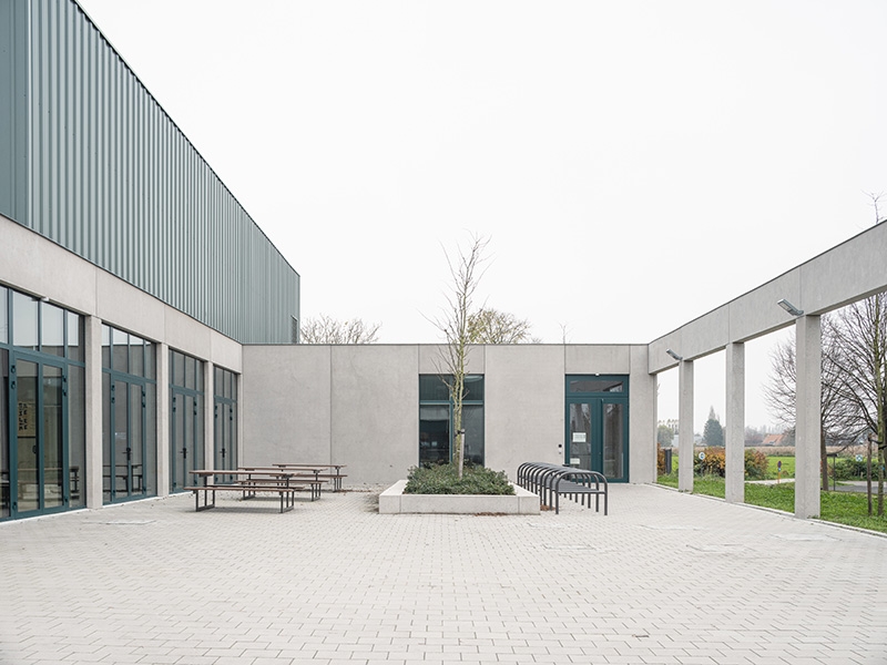Het programma werd gerealiseerd door het maximaal bewaren van de bestaande infrastructuur en het welgemikt toevoegen van het nieuwe programma. De bestaande volumes waaronder bv. de grote sportzaal, waren eerder gebouwd als industriegebouw en niet aangepast aan huidige comforteisen. Doorgedreven kosten-baten analyses hebben ertoe geleid dat deze volumes voorzien werden van nieuwe performant geïsoleerde gevels en weer klaar staan voor de komende 40 jaar.