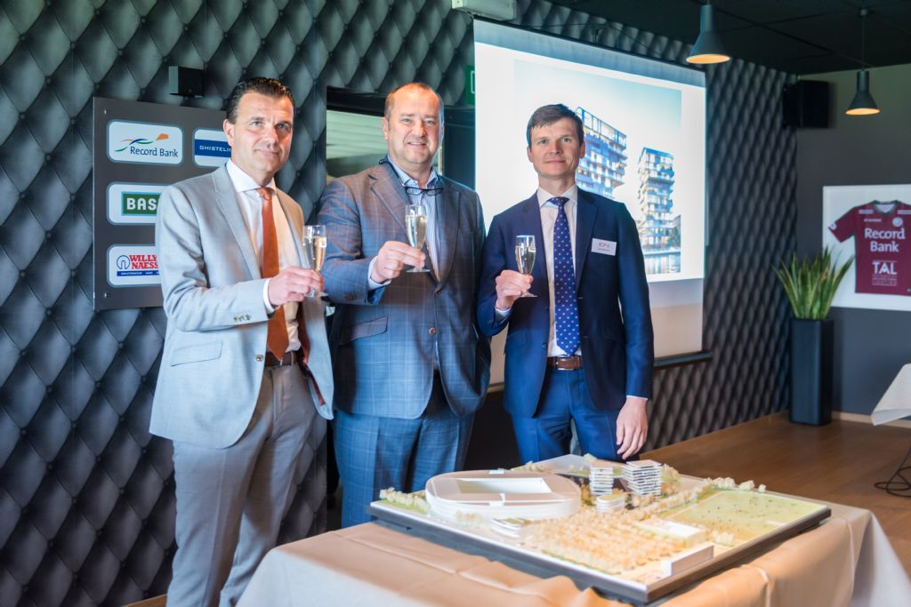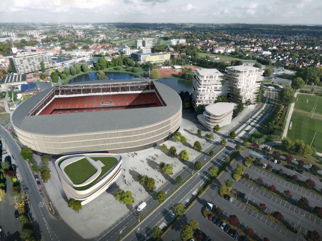 De relatie van de nieuwe bebouwing met de bestaande omgeving en het stadion is ook duidelijk. Het retail- en kantoorgebouw, het hotel en het stadion vormen een architecturaal drieluik. En de twee woontorens markeren samen met het hotel alvast ‘de Poort van Waregem’.