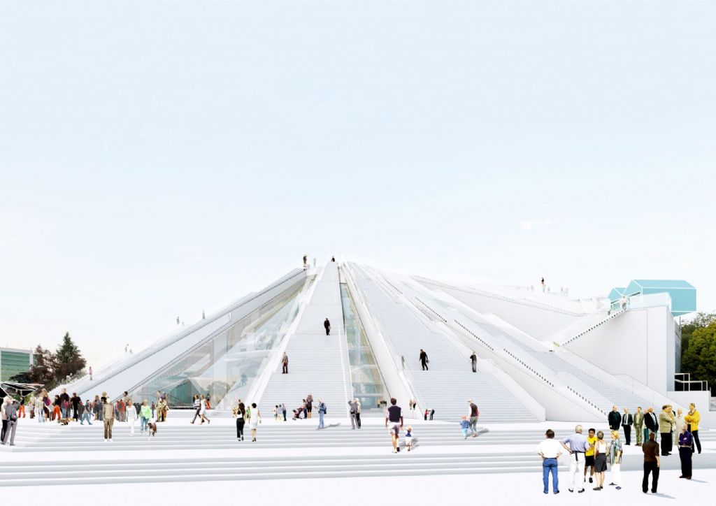 De kenmerkende stralen die je bij bovenaanzicht van de piramide ziet zullen tijdens de renovatie omgetoverd worden tot trappen die naar een dakterras leiden. MVRDV haalde hiervoor inspiratie uit de Albanese jongeren die, hoewel het gebouw al jaren leegstond, op het dak klommen om daar samen te zijn en te chillen. Deze vorm van respect voor het huidige, informele gebruik van het gebouw is essentieel in de visie MVRDV, dat de burgers net extra uitnodigt om deze functie te delen.