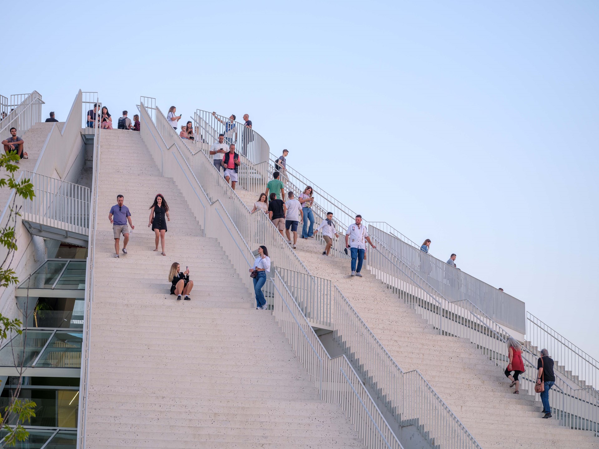 Tirana, Albanië is een bijzonder gebouw rijker. De Pyramid, ooit gebouwd als een monument voor de communistische dictator Enver Hoxha, werd door het Nederlandse architectenbureau MVRDV ingrijpend getransformeerd. De betonnen structuur vormde daarbij het uitgangspunt: de gladde balken waar jongeren vanaf gleden na de val van de dictator toen de Pyramid nog een ruïne was, kregen trappen zodat iedereen over dit gebouw heen kan lopen. Tussen de spanten loopt de openbare ruimte door. Buiten en in het gebouw worden bezoekers verwelkomd door een uitgestrooide verzameling gestapelde gekleurde ruimtes, met daarin cafés, studio's, workshops, festivals en leslokalen waar Albanese jongeren gratis onderwijs krijgen in technologische vakken.