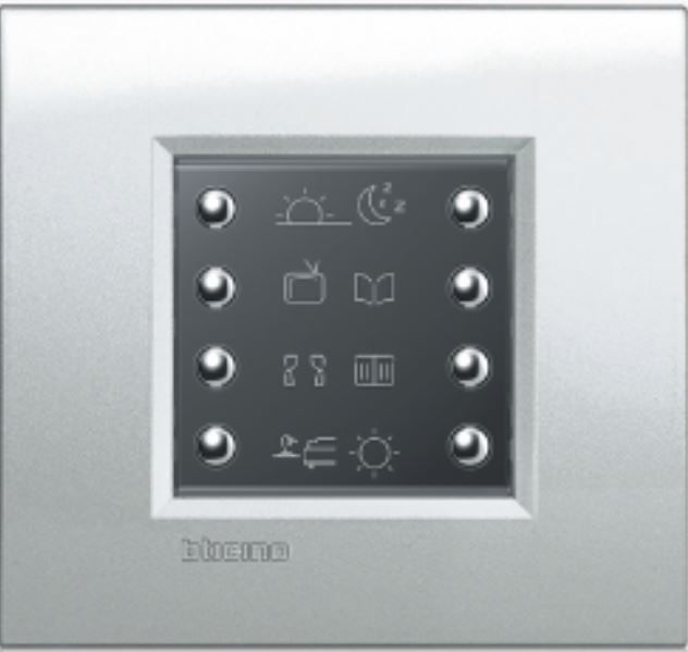 De zeer compacte bediening met acht toetsen vormt de ideale oplossing voor het bedienen van verlichting, rolluiken en scenario’s. Het toestel is volledig vrij programmeerbaar.