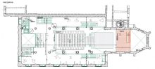 Bij de inrichting blijft de imposante ruimte van de kerk bewaard. Het basisidee gaat uit van een vrij te gebruiken zaal omringd door ondersteunende functies. De zaal blijft volledig vrij van obstakels en vaste inrichtingselementen. Afhankelijk van de evenementen zal het publiek plaats kunnen nemen op een aantal rijen losse stoelen of op een uitklapbare tribune, die op verschillende plekken kan worden opgeborgen achter een gordijn. Ook staande recepties of aan tafel zittende activiteiten kunnen worden voorzien.