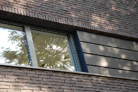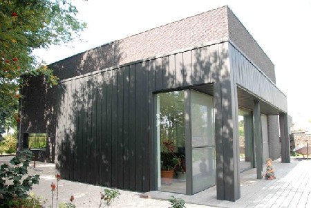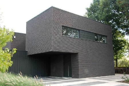 De woning bestaat uit een aantal in elkaar geschoven volumes die geaccentueerd worden door gebruik te maken van een ruwe gelijmde gevelsteen in combinatie met zinken gevelpanelen. Beide materialen werden in een donkere kleur gekozen, waardoor de verschillende texturen beter tot hun recht komen. De inrichting van de woning is zeer sober met veel ingebouwde kasten. Op deze wijze wordt het open karakter van de woning benadrukt.