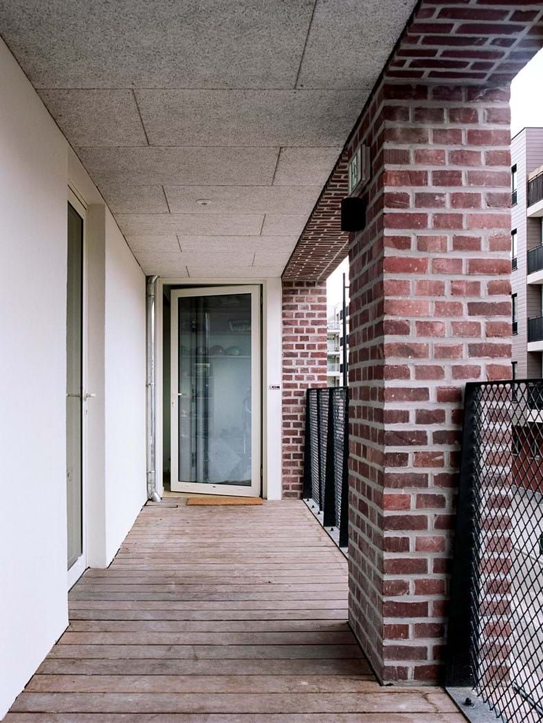 Die sociale woonomgeving wordt gestimuleerd door de polyvalente ruimtes, waarvan één zich op het dak bevindt. Op deze plaats, ontworpen is als een uitbreiding van de leefruimtes van de individuele woningen, kan men de grenzen van het individueel wonen in vraag stellen.