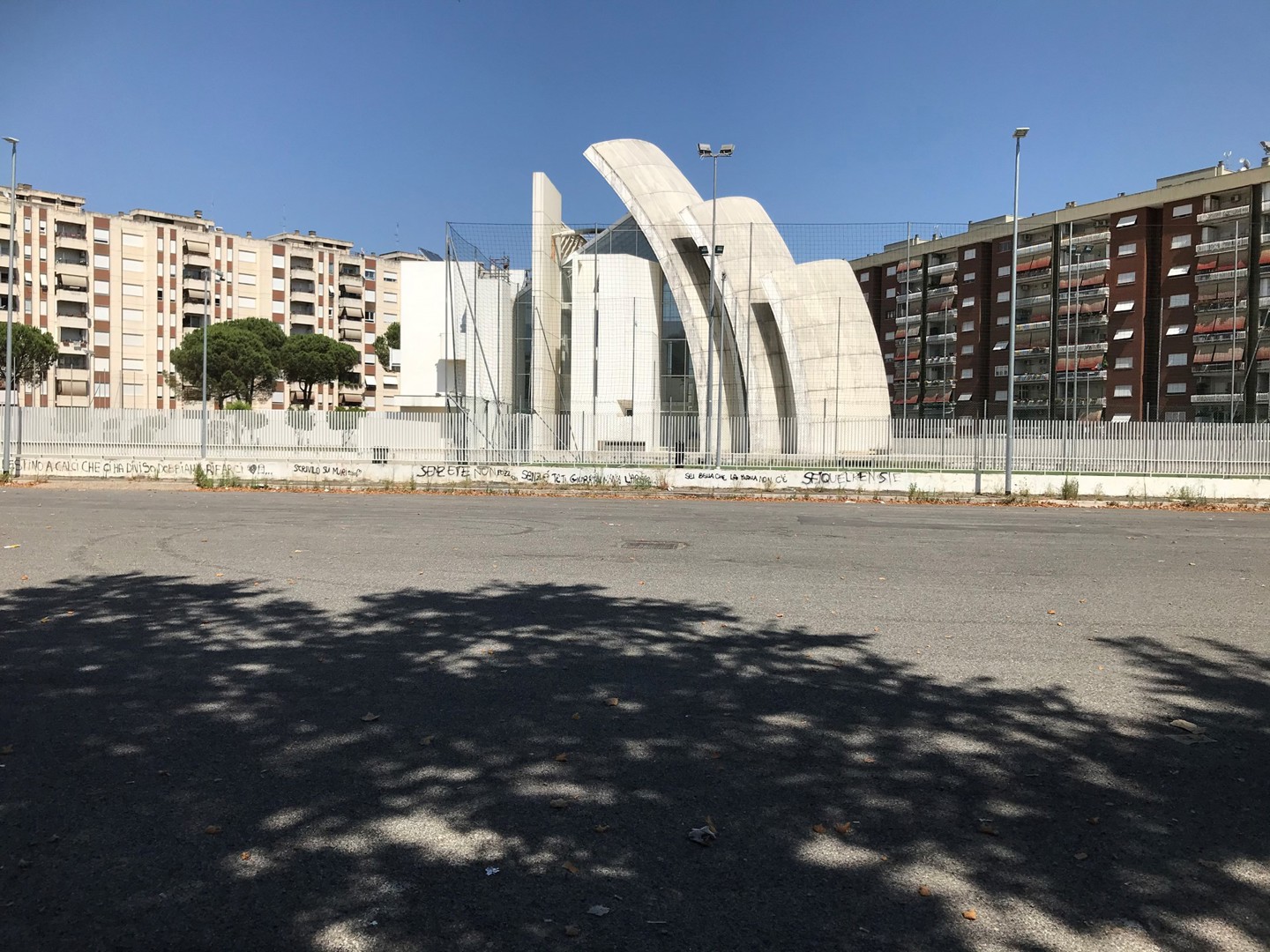 Een lezer van Circubuild maakte er ons attent op dat de architect en betonproducent toch niet helemaal in hun opzet zijn geslaagd. Hij bezocht de kerk vorige zomer en was erg teleurgesteld over de staat waarin ze verkeerde en nog meer over de troosteloze omgeving waarin ze werd neergepoot en het feit dat die op foto's van de kerk haast nooit te zien is. Hij bezorgde ons twee foto's om zijn stelling te staven, die we uiteraard graag publiceren.