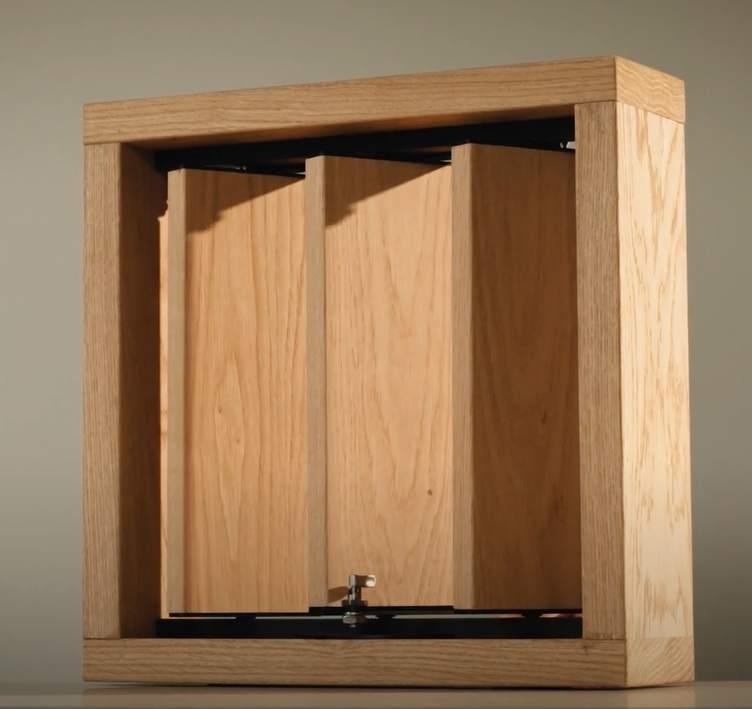 Het schuifbare kader laat toe om de shutter over de volledige breedte van een gevel te verplaatsen. Gebruikers kunnen de zonwering eenvoudig voor ramen positioneren of juist opzij schuiven, afhankelijk van de gewenste lichtinval of warmtebeheersing. De houten lamellen zijn beschikbaar in verschillende vormen – zoals rechthoekig of ellipsvormig – wat architecturale vrijheid biedt bij het vormgeven van lichtdiffusie en gevelritmiek.