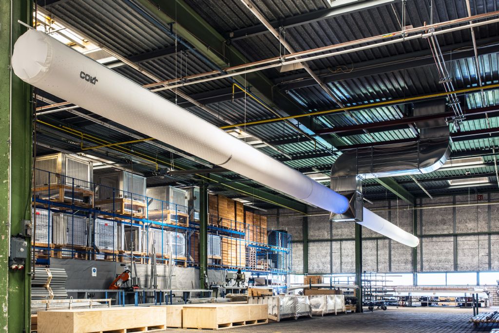 Colt International werkt ruim 85 jaar vooral conceptmatige klimaatoplossingen uit voor bedrijfshallen. Dat mondt vaak uit in combinaties met verwarmingsoplossingen, zoals het CoolStreamconcept: betaalbare koeling die werkt op verschillende groottes en met verschillende debieten. “Binnen dat concept kan je veel kanten uit. Je kan werken met buitenlucht of met recyclagelucht – een mengeling van verse lucht en gebruikte lucht die toelaat om ook de interne warmte te recupereren. Dankzij aangepaste luchtverdeelsystemen zoals de luchtverdeelslangen – poreuze doeken waar de lucht in grote debieten maar aan heel lange snelheden doorkomt – is het mogelijk om tocht te vermijden. Met de Colt Cortiva app kan het klimaatsysteem eenvoudig via tablet of smartphone bestuurd en gemonitord worden”, zegt Van der Auwermeulen. Nog een leuke ‘nice to have’: door middel van rode, blauwe of groene ledverlichting – verwarmen, koelen of ventileren – ziet men in welke modus de installatie zich bevindt.
