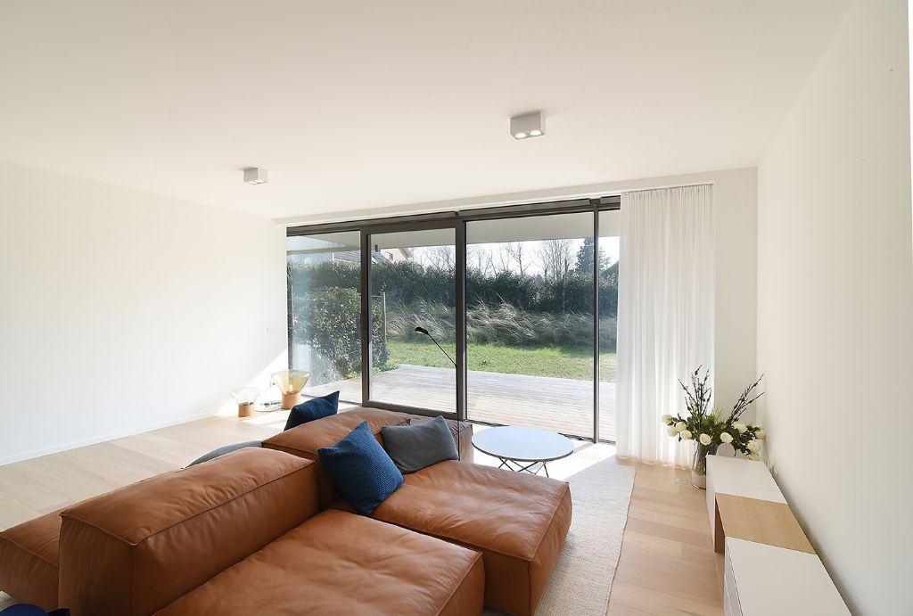 De ventilatieroosters werden onopvallend geïntegreerd op het raamprofiel, wat zorgt voor een strak design. ‘Bij deze residentie zijn ook heel wat niet werkende roosters ingezet omdat er eigenlijk niet zoveel roosters nodig waren om het nodige ventilatiewerk te doen. Op die manier werd, qua buiten- en binnenzicht, een esthetische eenheid binnen deze minimalistische structuur gevormd,’ verklapt Stevens.