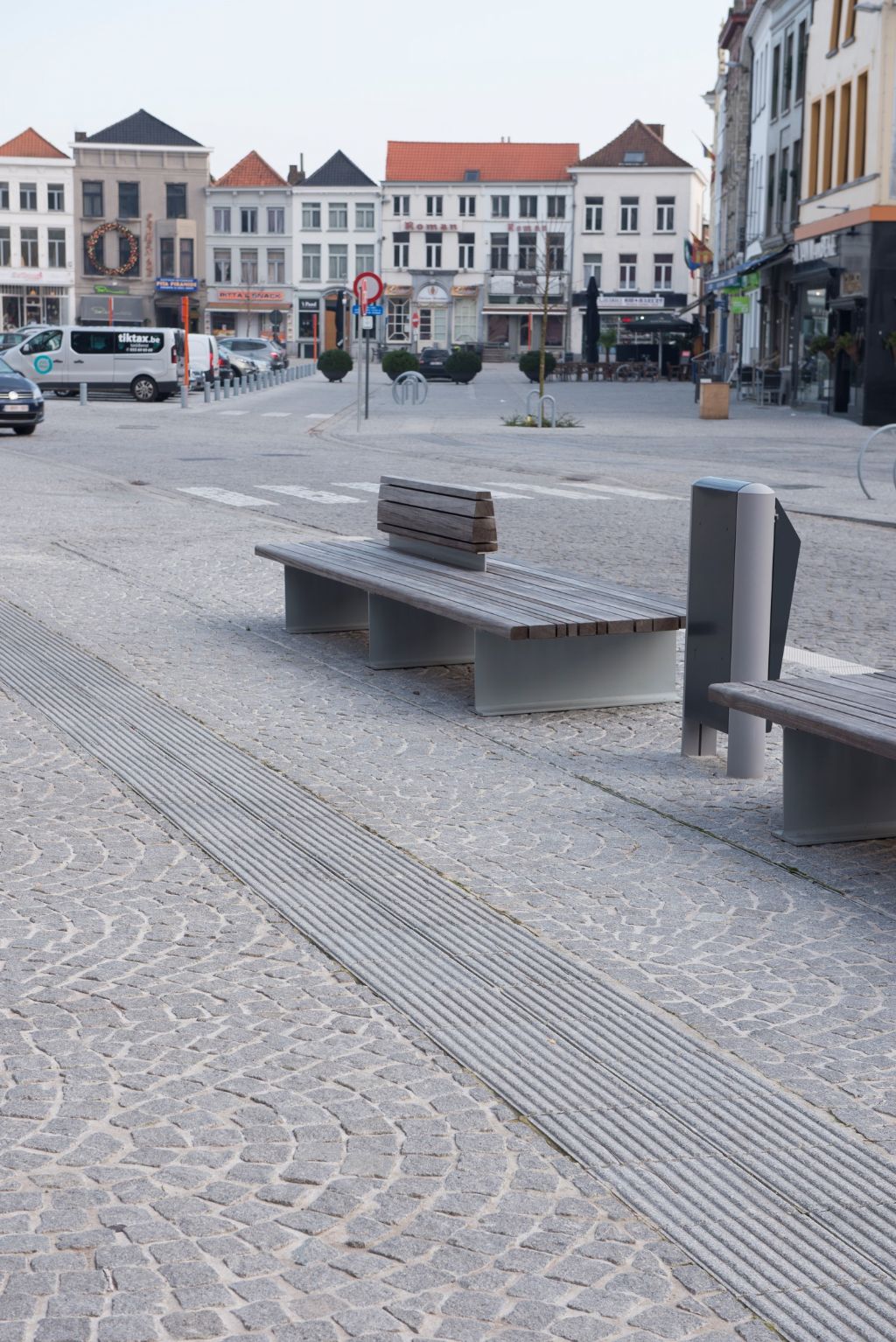 Bij het ontwerp heeft de stad Oudenaarde gekozen voor veelvuldig gebruik van duurzame natuursteen, die geleverd wordt door Beltrami.