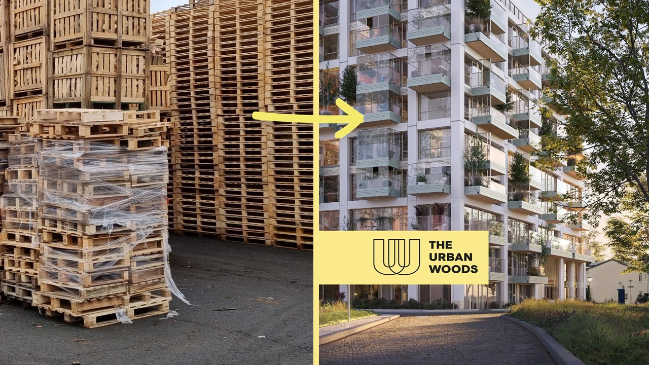 The Urban Woods Delft is een hightech appartementencomplex met 10 verdiepingen voor het midden segment. Beton is er nauwelijks. Zelfs de kern en de liftschacht zijn van hout. Deels gerecycled. Het is door hen zó behandeld, dat het eeuwenlang meegaat. “Bizar” vertelt Tim Vermeend, mede-oprichter van The Urban Woods, enthousiast. “Een berg van 1 miljard pallets werd jaarlijks weggegooid en nu… gaan we er gewoon in wonen.”