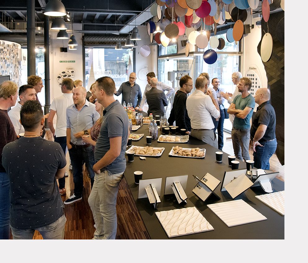 De vertegenwoordigers van Trespa legden hen ook enkele prototypes voor van producten die op dit moment ontwikkeld worden. Op deze manier wilde Trespa polsen naar de interesse van de architecten, voor ze op de markt worden gebracht.