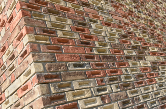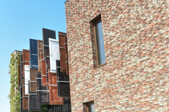 Restproduct van Nelissen zorgt voor een esthetisch kleurijk toneel op de gevel van De Kringwinkel in Riemst. Zo krijgen niet alleen de spullen een tweede leven, maar ook de recuperatiematerialen van de steenbakkerij. Samen met Architectenbureau BURO B zetten ze in op ecologisch bouwen.