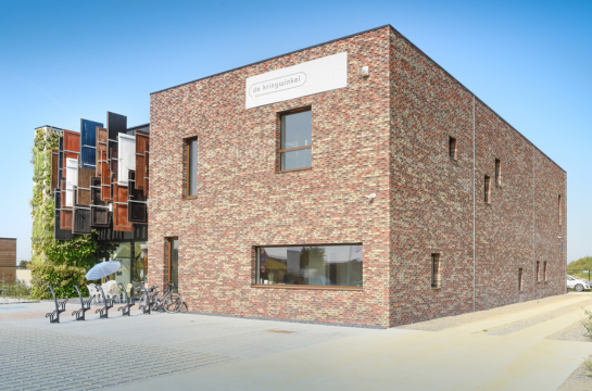 Het resultaat van deze gedurfde keuze is een opvallende uitstraling van het gebouw. Naast de ‘second life’ gevelstenen koos het architectenbureau ook voor andere atypische afwerkingen. Zo dienen onder andere oude buitendeuren als zonwering en werden er fout gemeten ramen in de gevel geïntegreerd. De Kringwinkel in Riemst is met haar ecologisch gebouw helemaal klaar voor de toekomst!