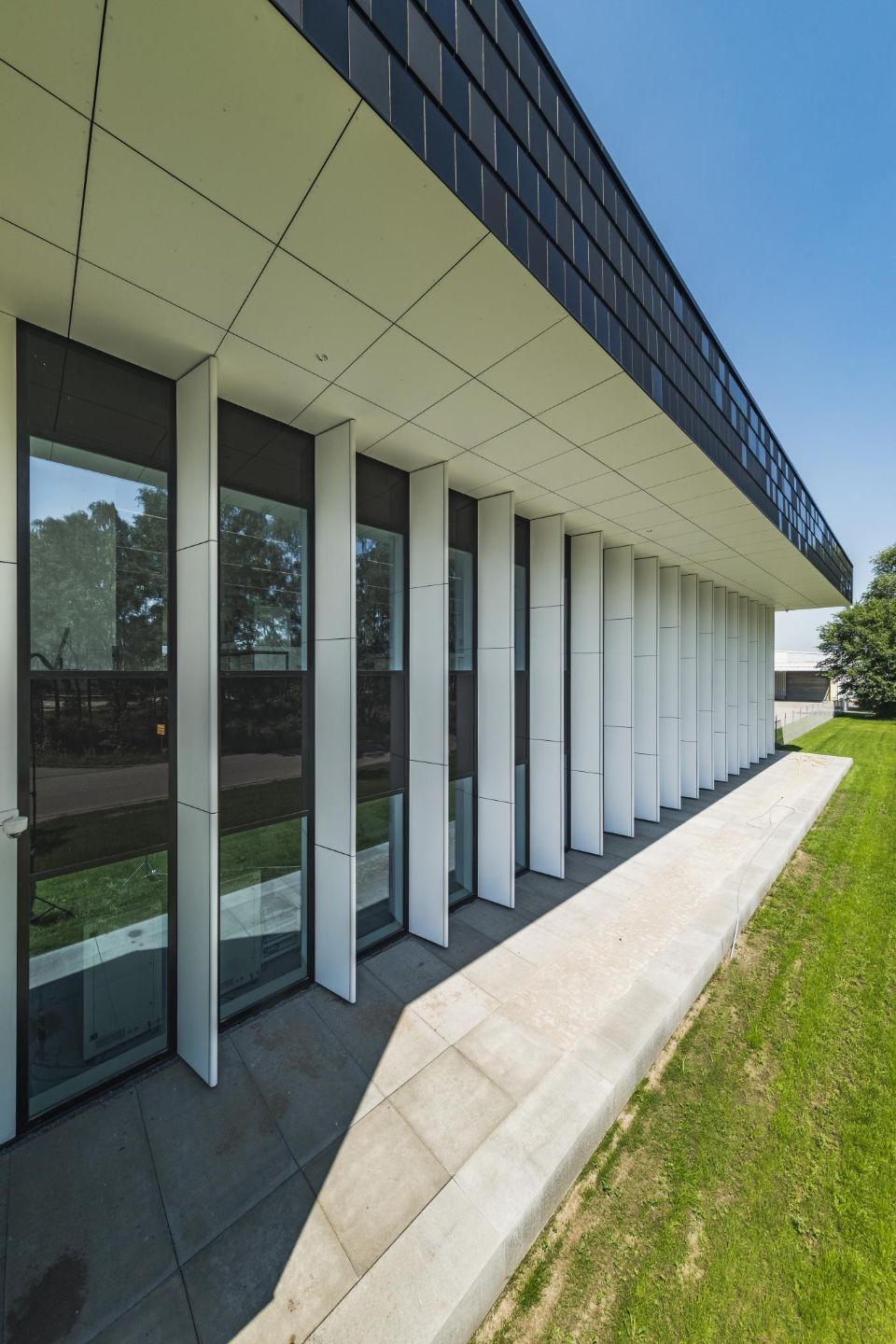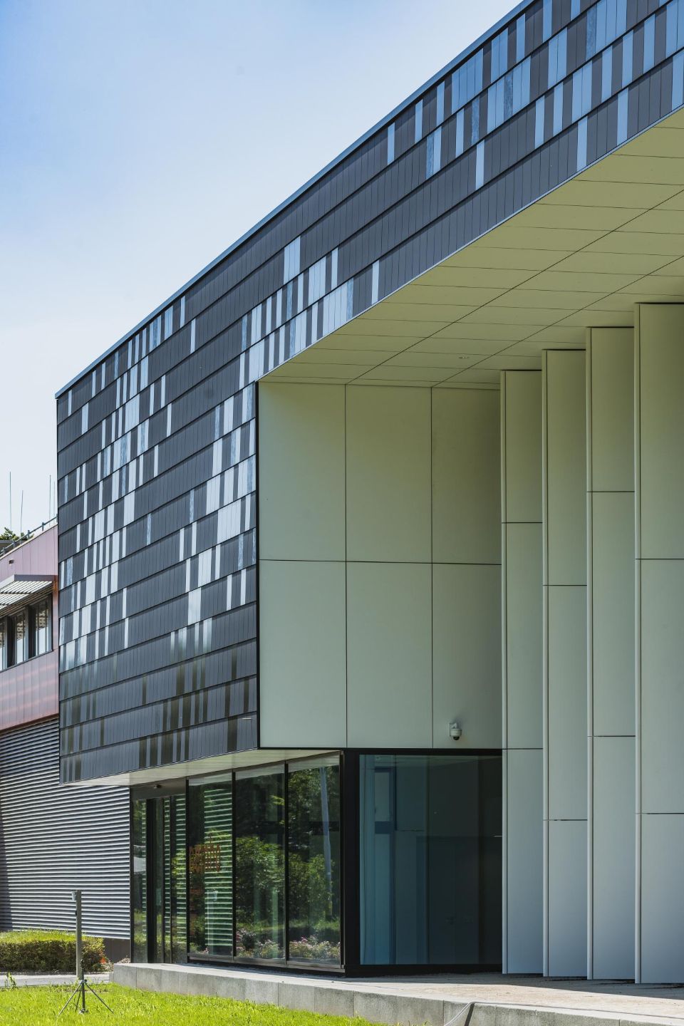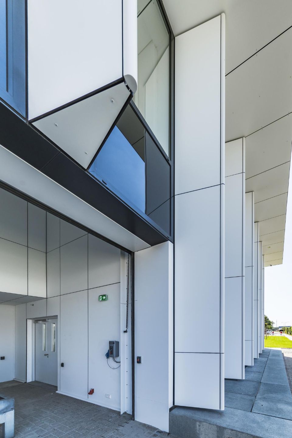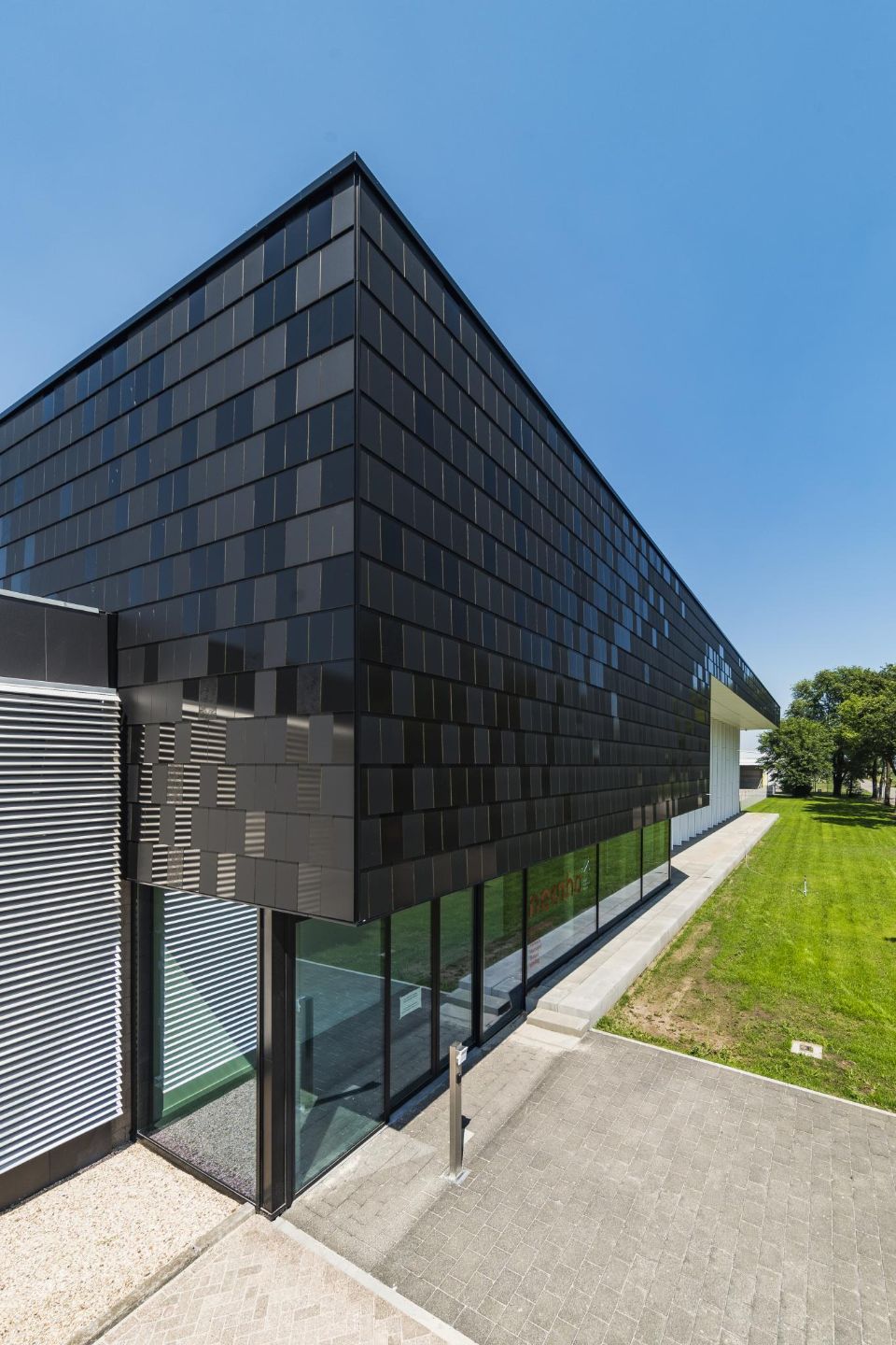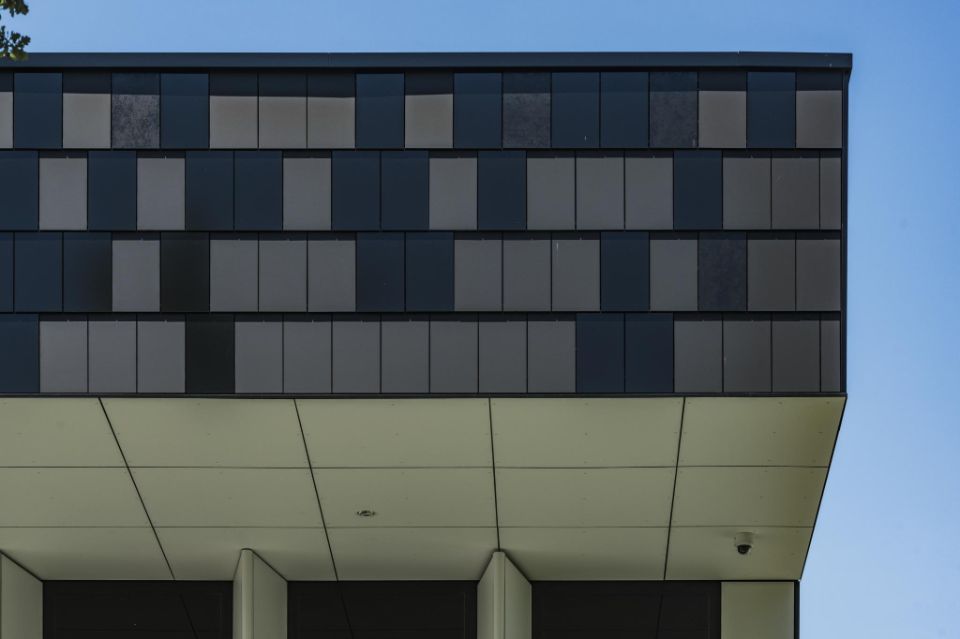 Erik van Eck verduidelijkt: “Voor veel Nederlanders zijn Trespa®-platen een vrij conventionele optie. Het was voor mij dus een uitdaging om ze volkomen te verrassen. Bovendien zou het ontwikkelen van een nieuw, progressief idee naadloos aansluiten bij het R&D-doel van het gebouw. Dat heeft erin geresulteerd dat we gebruik hebben gemaakt van Trespa® Meteon®-panelen die eruit zien als en de werking hebben van reptielschubben….”