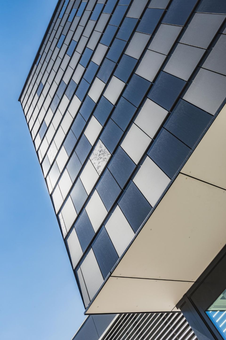 “Deze gevelbekleding is anders dan alles wat we tot dusverre gezien hebben. De gevels zien er op z’n minst gezegd fascinerend uit, maar tegelijkertijd zijn de effecten zeer subtiel. Afhankelijk van het tijdstip van de dag en of het bewolkt of zonnig is, zorgen de uiteenlopende kleuren zwart van de Meteon®-panelen voor allerlei verschillende tinten en glansniveaus. Dit was een van onze grootste projecten van de laatste tijd en zonder meer het meest uitdagende. En voor alle betrokken partijen is het beslist een mijlpaal.”