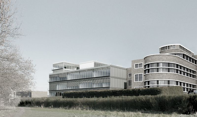 We vertrokken vanuit het respect en de beeldbepalende waarde van het bestaande schoolgebouw uit 1932. Door de toevoeging van een nieuw L-vormig volume, werd het geheel gesloten en ontstond een binnenplein voor de school. Deze ruimte zorgde voor samenhang, overzicht en intimiteit . Het geheel werd op een doorlopende sokkel geplaatst die oud en nieuw met elkaar verenigde. In deze sokkel werden auditoria en ontmoetingsruimten opgenomen als bindingsfactor voor de school. De uitbreiding stelde zich bewust als volume en typologie bescheiden op tegenover het bestaand gebouw.