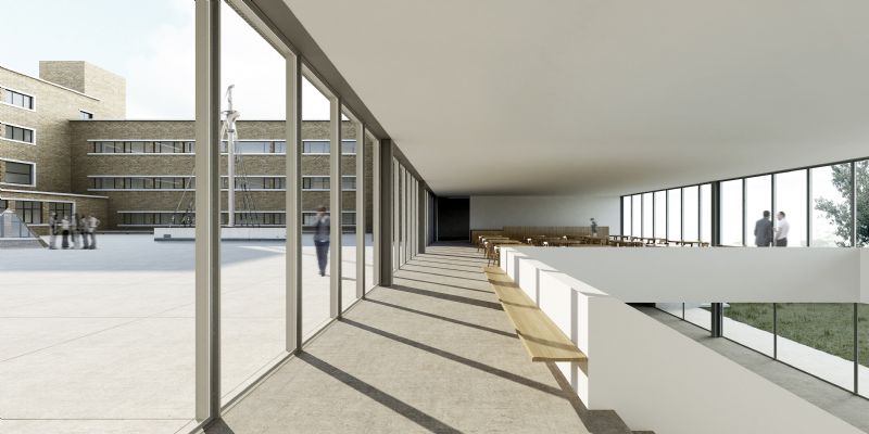 Het herstellen van de oorspronkelijke situatie van de jaren 30 en de gedurfde sloop van de toevoeging van de vleugel uit de jaren 50. Daar bovenop een kritische analyse van het programma van eisen met een eigentijdse visie op de organisatie van het onderwijs, en daaruit resulterend een sterk gereduceerd bouwprogramma.