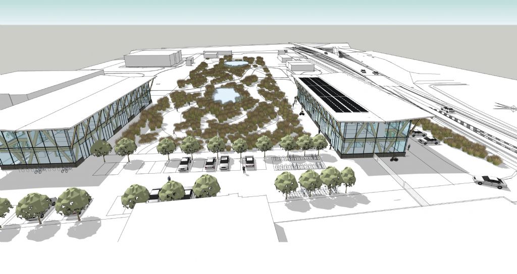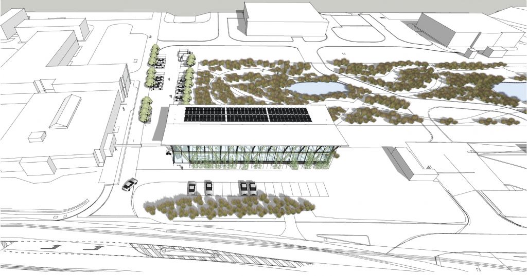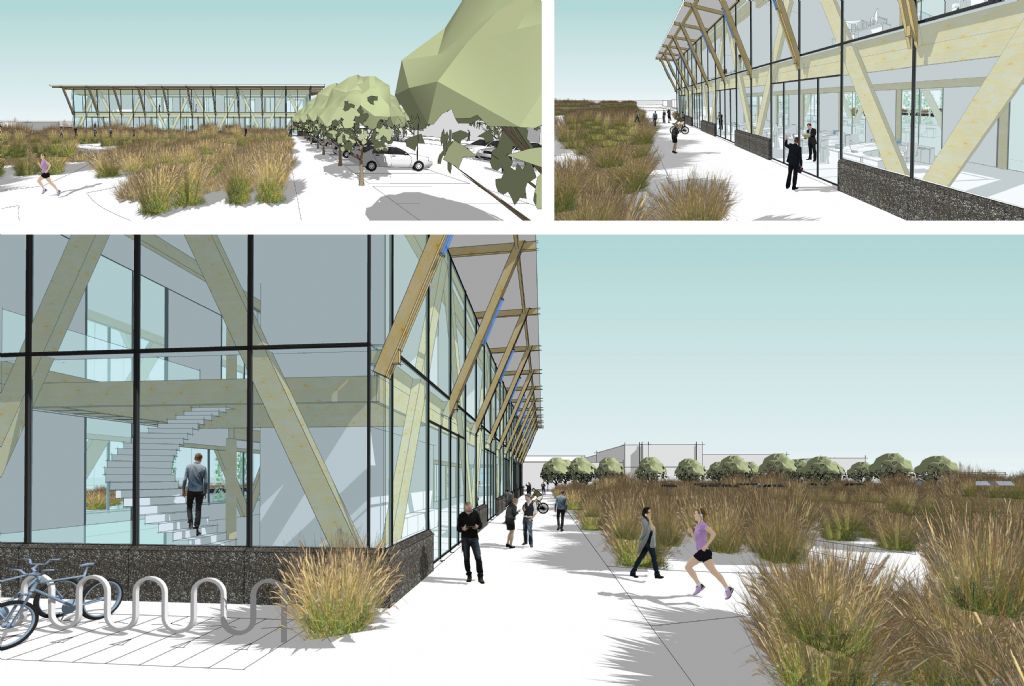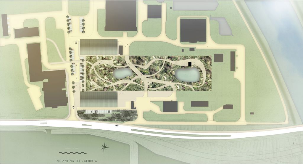 De inplanting en de footprint van het nieuwe ICC-gebouw vindt directe aansluiting bij deze centrale, langgerekte groenzone en zo ontstaat een lineair, uitbreidbaar gebouwconcept waarbij de gebruikers erg betrokken worden bij de beleving van de groenzone. Het nieuwe ICC bevindt zich evenwijdig aan de straatzijde en vormt zo een buffer en een overgang van de drukkere straatzijde naar het rustig gelegen groene binnengebied.