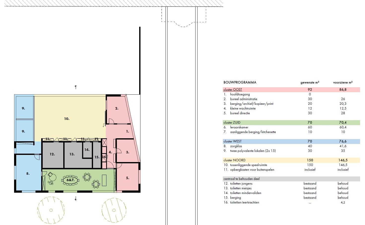 Flexibiliteit en toekomstbestendigheid vormden een andere pijler van het ontwerp. Volgens 2PK Architecten moet architectuur niet alleen functies invullen, maar ook kansen creƫren voor ontmoeting en interactie. Elke cluster kan zich maximaal openen naar buiten, waardoor de relaties tussen de verschillende ruimtes versterkt worden: een leraarskamer met zicht op de tuin, polyvalente ruimtes die aansluiten op de speelplaats, en een centrale speelruimte die een marktgevoel oproept. Door een doordachte basisstructuur en circulatieschema in te zetten, wordt een grote mate van flexibiliteit gegarandeerd, waardoor het gebouw kan meegroeien met toekomstige noden.