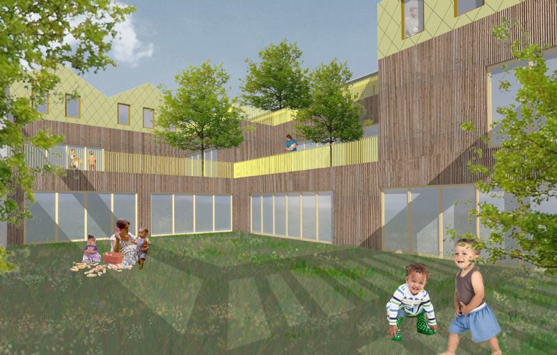 "Ontwikkel een wijkcentrum op een unieke locatie tussen het kanaal en het Zinneke. Een gebouw met een sporthal, een boksclub, een polyvalente sportzaal, een Nederlandstalig én een Franstalig kinderdagverblijf, de bijhorende administratieve ruimten en een conciërgewoning." Architectenbureau Cuypers en Q was geprikkeld en diende een ontwerp in. "Het samenbrengen van al deze functies maakte het programma complex, dus moest er gezocht worden naar een intelligente stapeling," aldus Ilze Quaeyhaegens.