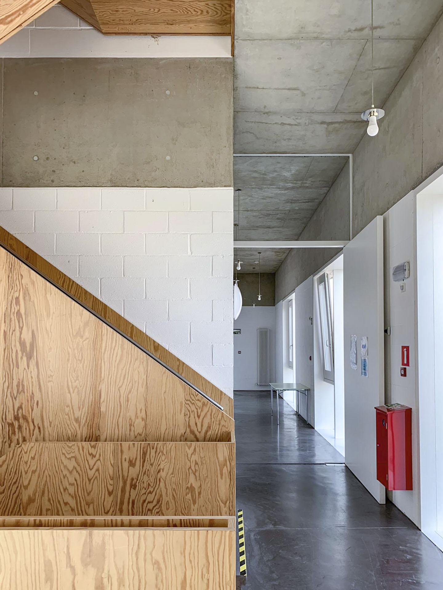Het opmerkelijke aan De Steen is dat het een multifunctioneel gebouw is dat heel wat verschillende functies herbergt waaronder een jeugdlokaal, een polyvalente zaal, de lokale kunstacademie, een repetitielokaal voor muziek en de dienst vrije tijd van de gemeente. Hierdoor heb ik al enkele keren de kans gehad om het interieur van het gebouw te bezoeken. Het jeugdlokaal bestaat bijna volledig uit houten panelen. De polyvalente zaal die soms dienst doet als fuifzaal daarentegen bestaat uit cellenbeton en betonnen balken. Het contrast tussen de twee ruimtes die ik vooraf al eens had bezocht is groot. Dit wakkerde mijn nieuwsgierigheid aan om eens een kijkje te nemen hoe de rest van het interieur is opgebouwd.