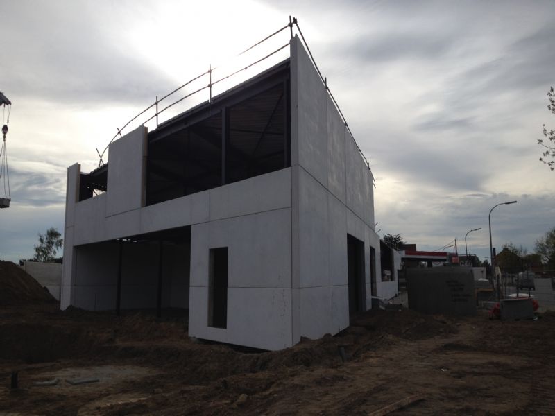 MASS Architects koos bewust voor één volume dat waarin alle functies geïntegreerd zijn, met een eenheid in zowel vorm als materialisatie. De pompen worden mee opgenomen in het volume door een vergroting van de bestaande luifel. “Het bestaande tankstation is afgebroken maar de structuur van de bestaande luifel moest blijven staan aangezien de pompen en de brandstoftanks in de grond verankerd zijn. De luifel wordt vernieuwd en verlengd. Deze kwestie was uiteindelijk het beginpunt van ons ontwerp,” stelt Pignanelli. “Het perceel heeft een driehoekige spitse vorm waardoor het gebouw een bijzondere vormgeving heeft meegekregen. Er is geen enkel paneel dat loodrecht staat op een ander paneel. De ene zijgevel loopt evenwijdig met de rustige Paddenstraat, de andere gevel staat parallel met de drukkere Genkersteenweg. Daarnaast is de bouwtermijn niet van de poes: het gehele project zal op slechts 60 werkdagen gerealiseerd worden. Tijdens een eerste fase ligt de focus op de shop en de pompen, in een tweede fase komen er drie wasboxen en een rollover carwash,” klinkt het. Parkeergelegenheid was van groot belang voor bouwheer Giuliano Bruno: “In elk van onze stations zijn er 50 tot 70 zitplaatsen. In Hasselt zullen dat er 74 zijn. Qua parkeergelegenheid gaan we voor circa 45 stalplaatsen.”