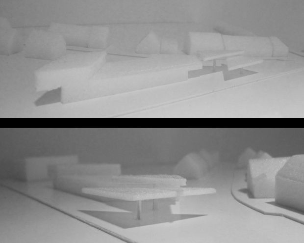 Het langwerpige basisvolume richt zich hoofdzakelijk naar de Genkersteenweg waardoor de nodige distantie tot de achterliggende Paggestraat ontstaat. Aan de linkerzijde is het gebouw verhoogd tot twee niveaus. Daardoor is het gebouw minder horizontaal en langgerekt waardoor het uiteindelijk minder zwaar zal aanvoelen. Door te opteren voor een serene uitstraling qua vorm en materiaal- en kleurgebruik zal het gebouw volgens Pignanelli een rustpunt zijn in drukte van de commerciële as die de Genkersteenweg is. “Het station is een monolithisch volume met een speciale vorm. Om te zorgen voor een luchtige toets hebben we naar materiaalkeuze toe geopteerd voor bijzondere glaspartijen. Het witte architectonische beton van Schelfhout Beton uit Kinrooi past perfect binnen het kleurenpalet dat wit en lichtgrijs bevat.”