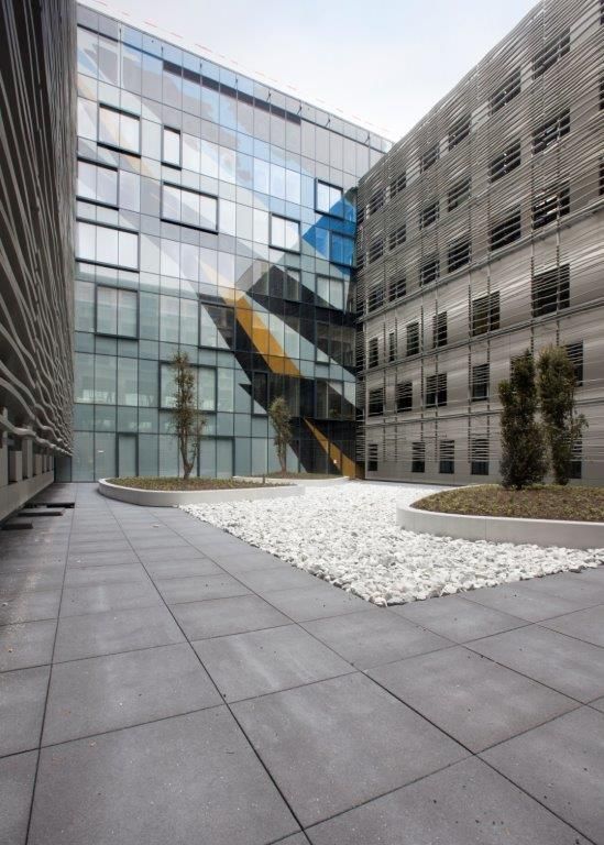 Sweco stond niet enkel in voor de stabiliteit van het ziekenhuisgebouw, maar ook voor het totaalontwerp van het parkeergebouw, het ontwerp en de aanleg van de omgevingsinfrastructuur (wegenis, riolering, nutsvoorzieningen en beplanting – inclusief de aansluiting met de Liersesteenweg) en de werfopvolging en -begeleiding gedurende alle fases van het bouwproces. “We konden onze multidisciplinariteit dus uitstekend uitspelen”, aldus Van den Wijngaert. “Ook voor het parkeergebouw hebben we een goede balans tussen kwaliteit en beperkte bouwkost nagestreefd. Het tweelaagse prefabbetonnen volume met dakparking bevindt zich langs de R6, biedt plaats aan 1600 wagens en is aan de kant van het ziekenhuis uitgerust met een groenscherm. Net zoals het hoofdgebouw is het structureel voorbereid op een eventuele toekomstige groei. De omgevingsaanleg is geënt op het algemeen ontwerpconcept voor het ziekenhuisgebouw. Niet enkel het ziekenhuis, maar ook de rest van de site moet zich aandienen als een new healing environment waarin patiënten zich thuis voelen. Begroening en zichtlijnen spelen daarbij uiteraard een cruciale rol. Anderzijds hebben we vanuit ecologisch oogpunt maximaal ingezet op regenwaterrecuperatie- en infiltratievoorzieningen. Het ontwerp voor de wegenis is flexibel opgevat, zodat er later eventueel kan worden ingespeeld op wijzigende configuraties van het openbaar vervoer.”