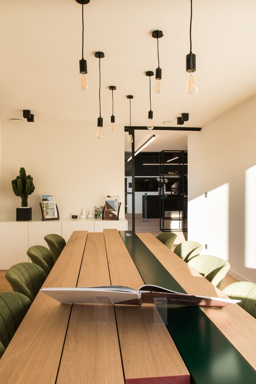 Vanuit de idee dat ‘teamrendement’ begint bij het gebouw werd centraal in het pand een ‘meeting point’ voor gasten en medewerkers voorzien en werd een multifunctionele lunch-, multimedia- en vergaderruimte geïnstalleerd geflankeerd door een sportzaal en een ontspannende ‘inspiratieruimte’. De achterliggende zongerichte en charmant ommuurde tuin wordt gelinkt aan deze ruimtes en hierdoor geactiveerd.