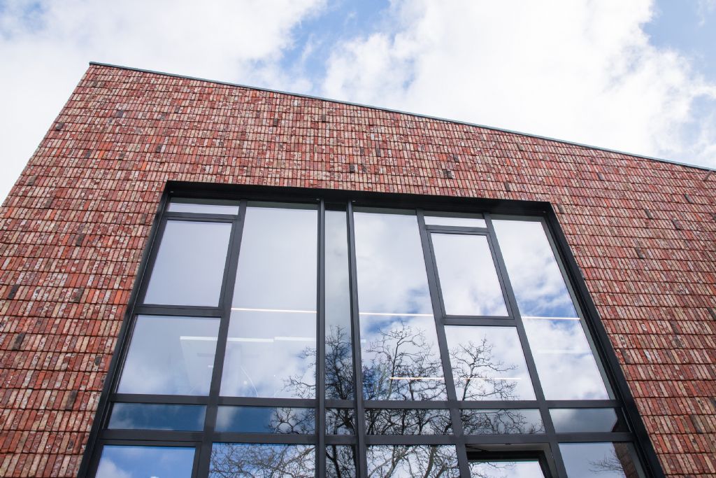 De voorgevel die het gebouw omarmt, werd uitgevoerd in een handvorm baksteen. ‘Door deze verticaal te plaatsen en in een ‘bibliotheekverband’ te verwerken wordt een heel andere uitstraling bekomen. Dit toont het pure vakmanschap van het bedrijf, en geeft onmiddellijk mee tot wat het bedrijf in staat is’ , klinkt het bij bow architecten.