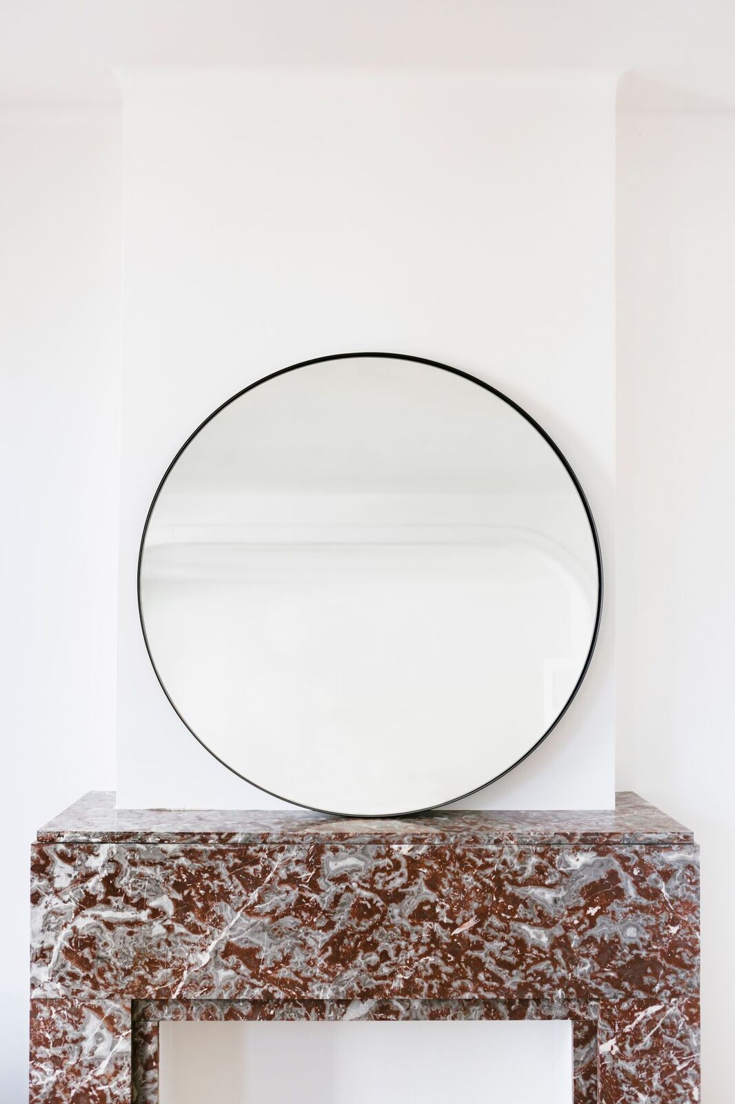 Door haar ronde vorm is Beatrice de meest veelzijdige spiegel uit de collectie. Ze geeft iets extra aan elke ruimte, van leefruimte tot kantoor. BEATRICE is verkrijgbaar in twee formaten en drie afwerkingen (zwart of wit staal en messing).