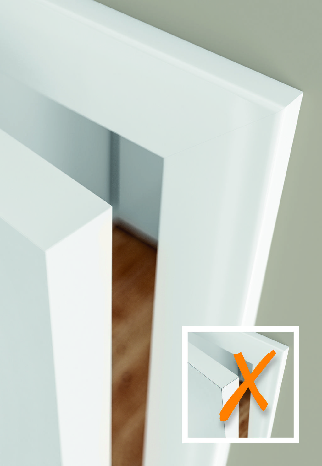 De 4Protect randbescherming aan de binnendeuren creëert een hoek met een perfecte overgang zonder voegen, voor een hoogwaardig deuraanzicht. Deze afwerking heeft een hoge slag- en slijtvastheid en is zeer krasbestendig. Hierdoor blijven de hoeken van het deurblad er perfect uitzien.