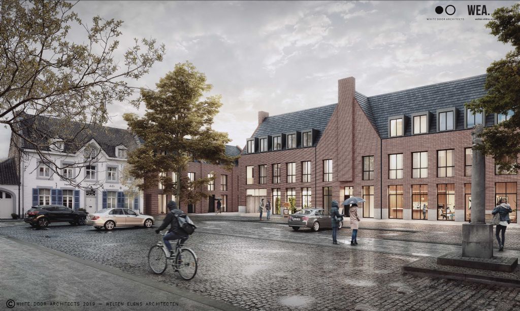 In de authentieke dorpskern van Oud-Rekem werkt men volop aan het project ‘Groenplaats Oud-Rekem’. Het gebouw zal 16 grondgebonden woningen voorzien van tuin, appartementen, commerciële ruimten en een ondergrondse parkeergarage met bergingen omvatten. De constructie is een ontwerp van White Door Architects bvba in samenwerking met Welten Eliëns architecten.