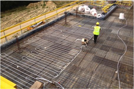Het was de bedoeling van AGC Glass Europe om een ‘zero energy building’ te realiseren. Concreet betekent dit dat alle primaire energie die nodig is voor het dagelijkse gebruik, moest komen van zonnepanelen en een duurzaam klimaatsysteem. Voor dat klimaatsysteem deed het bedrijf een beroep op Thermo Actief voor de warmte- en koudeopslag en schakelde het Uponor in voor de betonkernactivering. Ook werd er een warmtepomp in de energiecyclus geïntegreerd. Zero energy is het uiteindelijk niet geworden, maar het energieverbruik is tot een uiterst minimum beperkt.