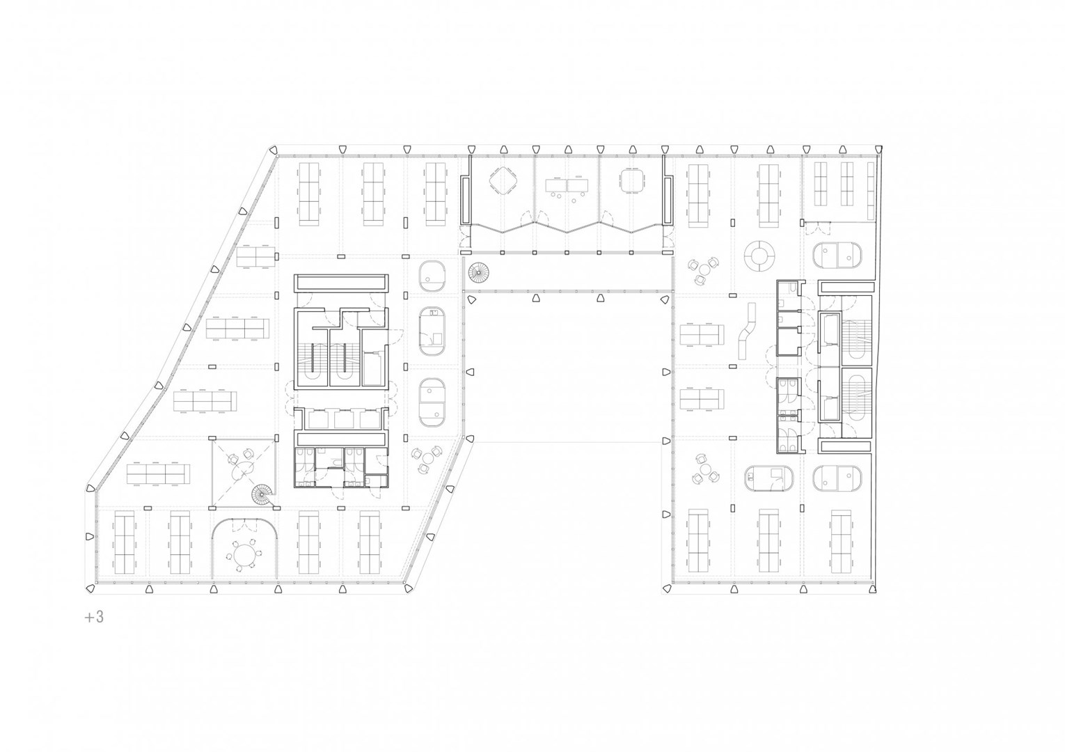 Met een evoluerend bedrijfsmodel in het achterhoofd ontwerpen BULK architecten en Sergison Bates Architects flexibele werkvloeren, die kunnen ingenomen worden door een open landschap van werkruimten of een cellulaire structuur van gesloten of semi-gesloten kantoren en die rekening te houden met wijziging in bezetting en veranderingen in programmatypologie en werksettings.