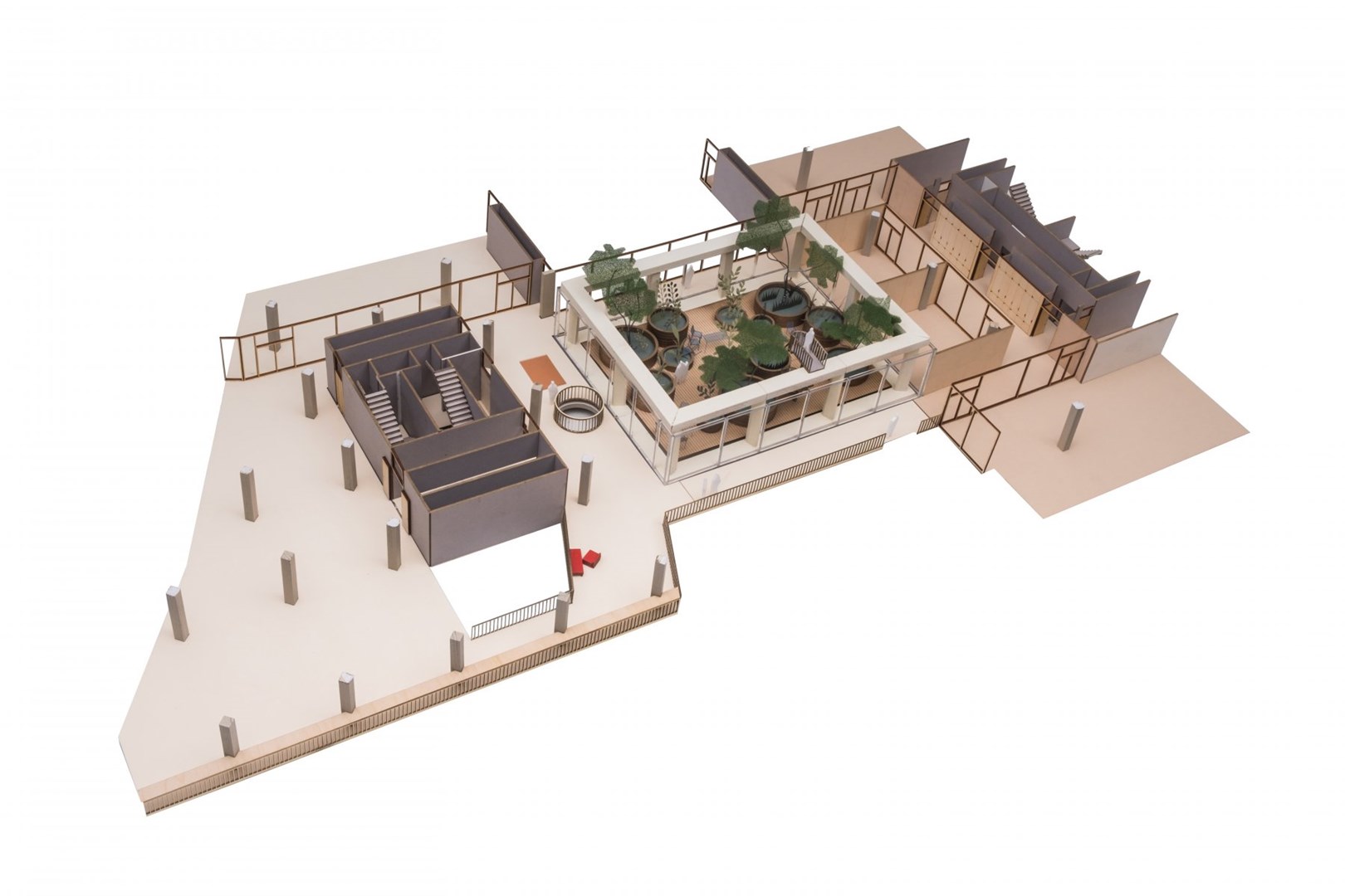 Het gebouw verbindt en completeert de straatgevel en bakent de rand van het bouwblok langs de Schelde af. De afgeschuinde verticale elementen van de gevels geven een dynamische nadruk aan de vorm: terugliggend op niveau om de centrale groene binnenplaats te vormen, terwijl de plint een openbare agora, tentoonstellingsruimte, een auditorium en een café herbergt, met een actieve voorgevel aan alle zijden, in lijn met de straat en aangrenzende gebouwen. De plint is poreus en biedt routes door het bouwblok, als voortzetting van het publiek domein.