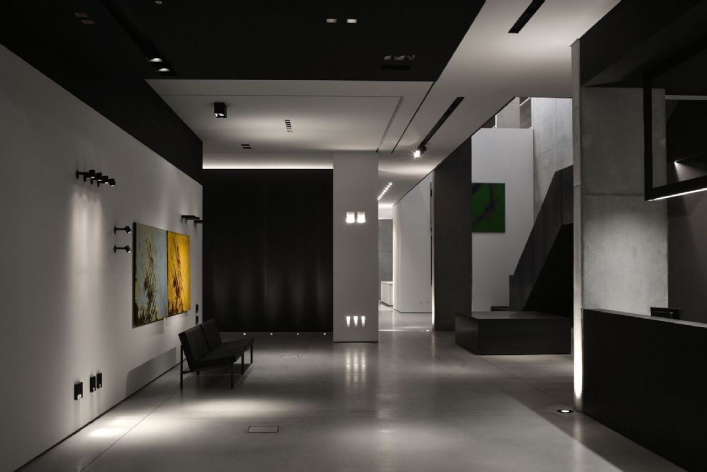 Zo is een van de drie vergaderzalen achter de receptiedesk uitgerust met de modernste videoconferentietechnologie en bevindt zich naast de modulair gesegmenteerde showroom waar klanten uit de hele wereld de Kreon-oplossingen in architecturaal optimale omstandigheden kunnen bewonderen, een ‘experience room’ waarin alle mogelijke lichteffecten kunnen worden gesimuleerd. Ook in het laboratorium voor fotogoniometrie (meting van lichtstralen), de fotostudio en de technische ruimte op de benedenverdieping werd bijzondere aandacht besteed aan de geavanceerde fotometrie en aan de zones waar onderzoek en ontwikkelingswerk worden verricht.