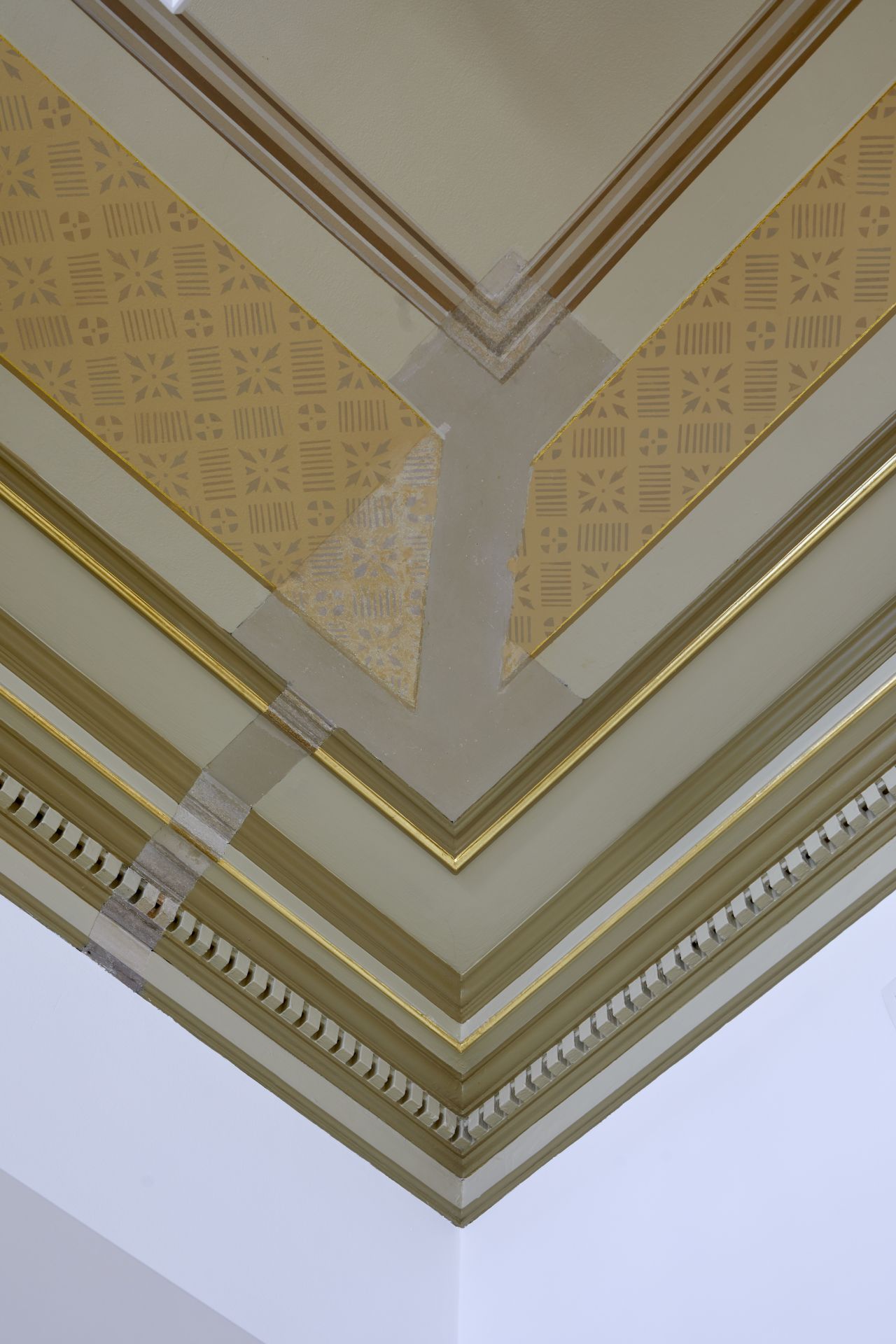 In een eerste fase werd de bepleisterde en geschilderde lijstgevel reeds gerestaureerd met behoud en herstel van het originele 18de-eeuwse schrijnwerk. In een tweede fase werden het interieur, de achtergevel en het dak gerestaureerd. Daarbij hebben we de historische interieuraankleding, dat aan het oog onttrokken was, opnieuw op de voorgrond geplaatst. Zo zijn de initiële stucplafonds vrijgelegd, is het binnenschrijnwerk hersteld en na kleurenonderzoek beschilderd volgens origineel kleurenpallet. De bestaande, originele houten bordestrap, die het hele gebouw ontsluit, werd volledig gerestaureerd en ook de vloeren zijn verstevigd en naar hun originele vorm teruggebracht.