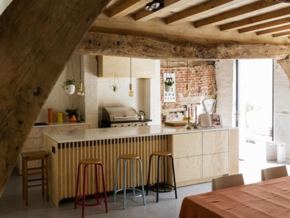 De moerbalken van de eerste verdieping waren volledig uit de pas. “Het verschil tussen het hoogste en laagste punt was 15 centimeter”, herinnert Paul zich. “Het was onmogelijk om de balken terug recht te trekken. Daarom hebben we ze uitgevuld met eiken stukken zodat we er terug een vlakke vloer op konden leggen. De oude plankenvloer moesten we volledig vervangen, maar we hebben terug voor eik gekozen om de originele look te bewaren.”
