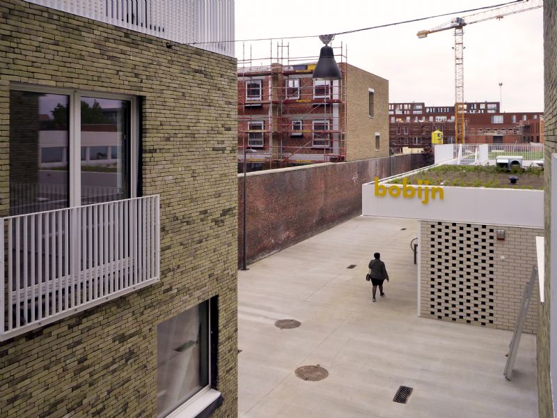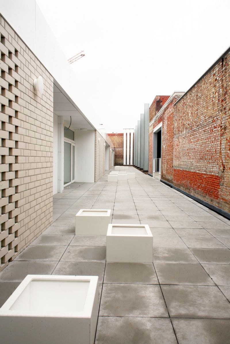 Langs de Van Luppenstraat zal de gevelwand vervolledigd worden. Het huidige ‘gat in de straat’ wordt ook dichtgebouwd met rijwoningen, met een kleine passage naar ’t Groen Kwartier. Het ontwerp laat de contouren van het perceel waar mogelijk vrij. Dit niet enkel om verdere ontwikkelingen van de randen toe te laten, maar ook om een duidelijke grens te definiëren. Het belangrijkste principe van het concept is dan ook het intra murosprincipe: de stenen constructies, gemene muren, en de aanpalende volumes zorgen voor een gesloten hof, een kamer als het ware. Hier, geborgen in de schoot van dit perceel en van de buurt, komt het kinderdagverblijf. De bewuste inpassing langs de nieuwe doorsteek zorgt voor een mix van wonen en publieke voorzieningen zodat er zowel overdag als ’s avonds letterlijk passage is.
