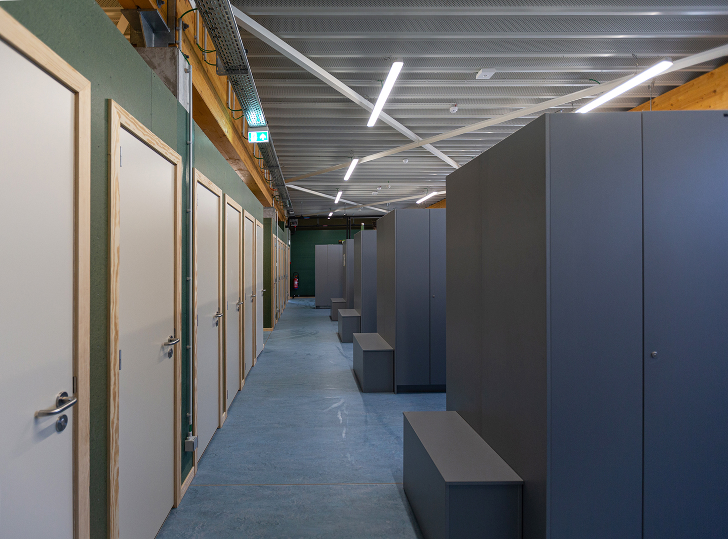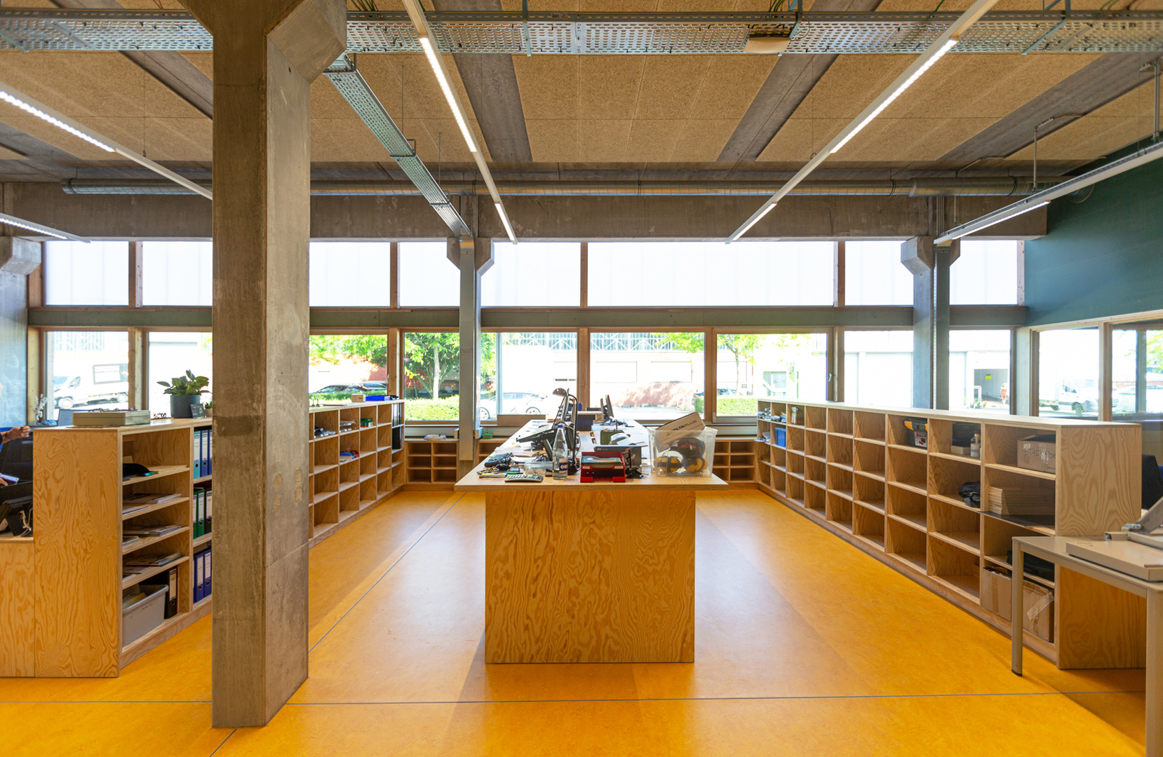 De vloeren in het nieuwe gebouw werden waar mogelijk afgewerkt met linoleum, een van de meest milieuvriendelijke vloerbedekkingen op de markt.