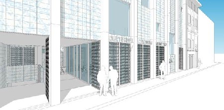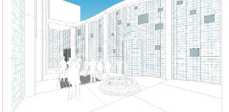 De kolomstructuur van de verschillende gevels en rond de patio zijn een subtiele refererentie naar de opbouw van traditionele gebedsruimtes. De gevelvlakken tussen de witte betonnen kolommen worden ingevuld met mozaiektegels. Hiervoor zal worden samengewerkt worden met hedendaags kunstenaars.
