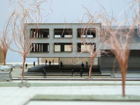 Het kiezen voor een compacte volumetrie maakt een doordacht schakelen en efficiënt ruimtegebruik noodzakelijk. Daarbij moet vermeden worden dat ruimtelijkheid en programmatorische relaties onder druk komen te staan. In het wedstrijdvoorstel worden daarom alle programmaonderdelen die een ruimere vrije hoogte vereisen geclusterd. Een specifieke werking tussen deze geclusterde ruimtes en de overige onderdelen wordt mogelijk door het aanwenden van split-levels. Een rustige maar continue variatie in ruimtelijkheid is het gevolg ervan. Onverwachte zichten, verrassende doorkijken en zichtlijnen verlenen het totale gebouw een hedendaags karakter, een milde spanning die anticipeert op anonimiteit.