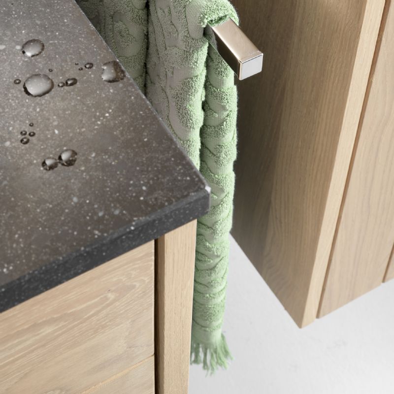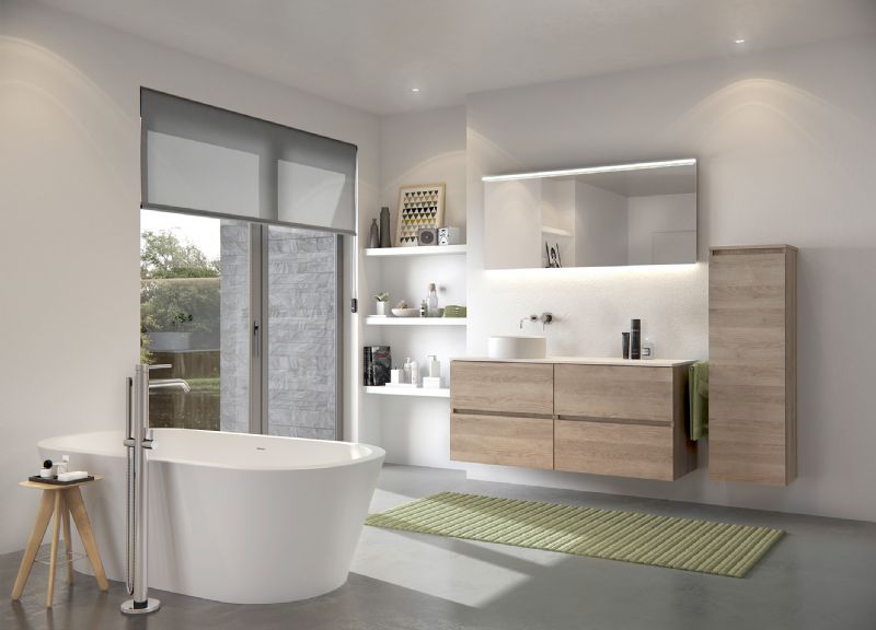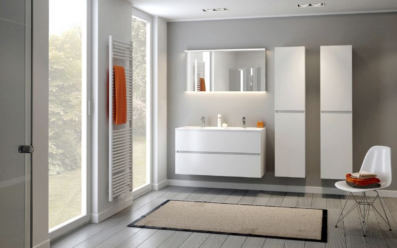 De troef van Molto is het creëren van ruimte door te combineren. De Molto-badkamermeubels zijn beschikbaar in poederwit, poedergrijs, eik natuur, eik grijs of massif eik. De lavabo's zijn vervaardigd uit kunstmarmer, solid, porselein, glas of blue belge.