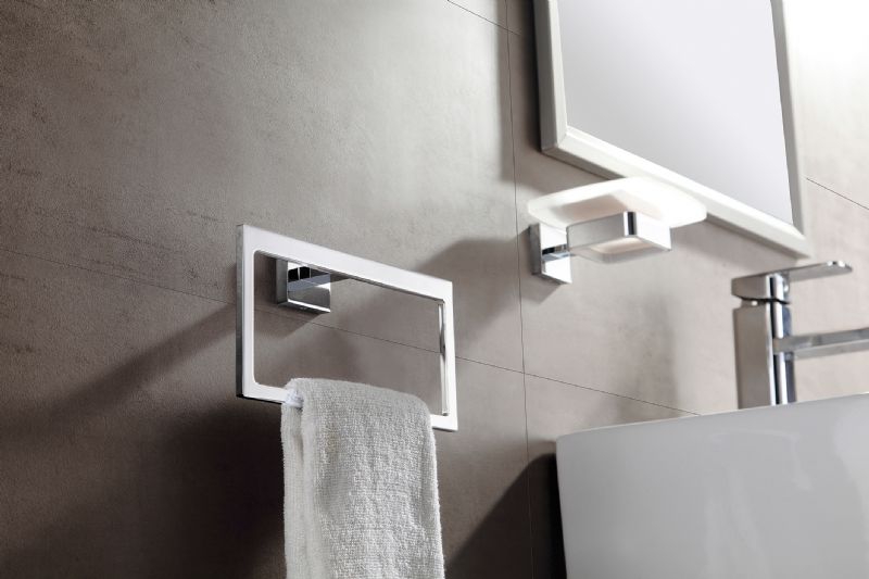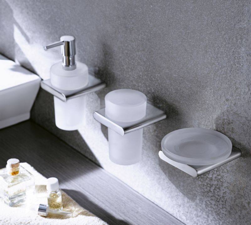 Desco concentreerde zich eveneens op praktische en bijpassende accessoires. Daarom lanceert het de nieuwe verchroomde Hold-collectie met toebehoren, gaande van dispenser tot zeepkorf en wc-borstel. De Hold-collectie is verdeeld in drie reeksen. De Hold On reeks gaat uit van een ronde vormgeving. Hold Soft combineert zachte rondingen en strakke lijnen. Hold Tight is strak en functioneel en past op elke muur, in elke douche en in elke kamer.