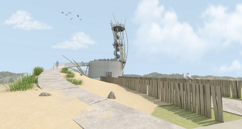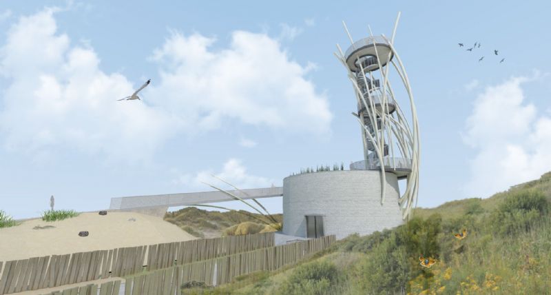 Aangezien het kustmilieu zijn tol geëist heeft op de oude, inmiddels inactieve watertoren, wil de gemeente Middelkerke de toren slopen en vervangen door een toeristische attractie. Architecten Delobelle ontwierp een hoge, beklimbare attractie die bezoekers een uitzicht biedt over het natuurgebied van 32 hectare groot en de kuststrook. De watertoren zal, op de basis van zes meter hoog na, volledig afgebroken worden. Uit deze basis zal de nieuwe constructie speels opflakkeren. Dankzij de moderne looks van de uitkijktoren lijkt de constructie uit de stenen sokkel te groeien als een bundel duin- of helmgras. De noodpompinstallatie die in de basis van de oude watertoren is ingebouwd, blijft behouden.
