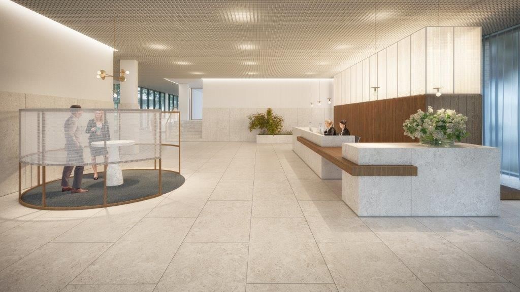 De architect creëerde een robuust volume met een neutrale uitstraling, waarbij de buitengevel in baksteen fungeert als autonome huid. De gevel is geen vertaling van wat zich in het gebouw afspeelt, maar eerder een interface van de gevarieerde bedrijvigheid. Achter de rigide voorgevel stimuleren de beglaasde binnengevel en de flexibele binneninrichting een creatieve samenwerking. Dankzij een groene patio zullen de toekomstige gebruikers heel het jaar door van een overvloedige natuurlijke lichtinval en groene zichten kunnen genieten. Het kantoorgebouw is uitgewerkt volgens de BREEAM-richtlijnen en kreeg van deze duurzaamheidsinstantie het label ‘Very Good’. Om dat te bereiken, koos studiebureau VK Architects & Engineers onder meer voor klimaatplafonds. Een vraaggestuurd ventilatiesysteem in de vergaderruimte waarborgt een continue binnentemperatuur en CO2-meting. Daglichtsturing en aanwezigheidsdetectie leiden de intelligente ledverlichting in goede banen, terwijl buitenzonwering verhindert dat de zomerse hitte het gebouw binnendringt.